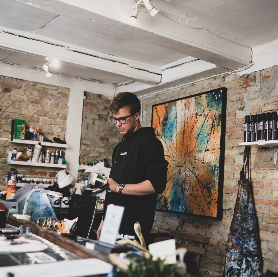 Lorsque vous visitez notre magasin, ce n'est pas seulement un autre magasin qui vend des baskets rapidement avec un gros profit. KarlsKicks veut contribuer à la culture de la sneaker et mettre fin à la culture de l'usage et du jetable ainsi qu'à notre violente surconsommation. C'est pourquoi vous rencontrerez un magasin d'expérience où nous nettoyons, restaurons, concevons, développons et recréons des baskets uniques. Nous l'appelons le Copenhagen Sneaker Concept Store - un magasin d'expérience où vous rencontrez le meilleur de la culture sneaker.